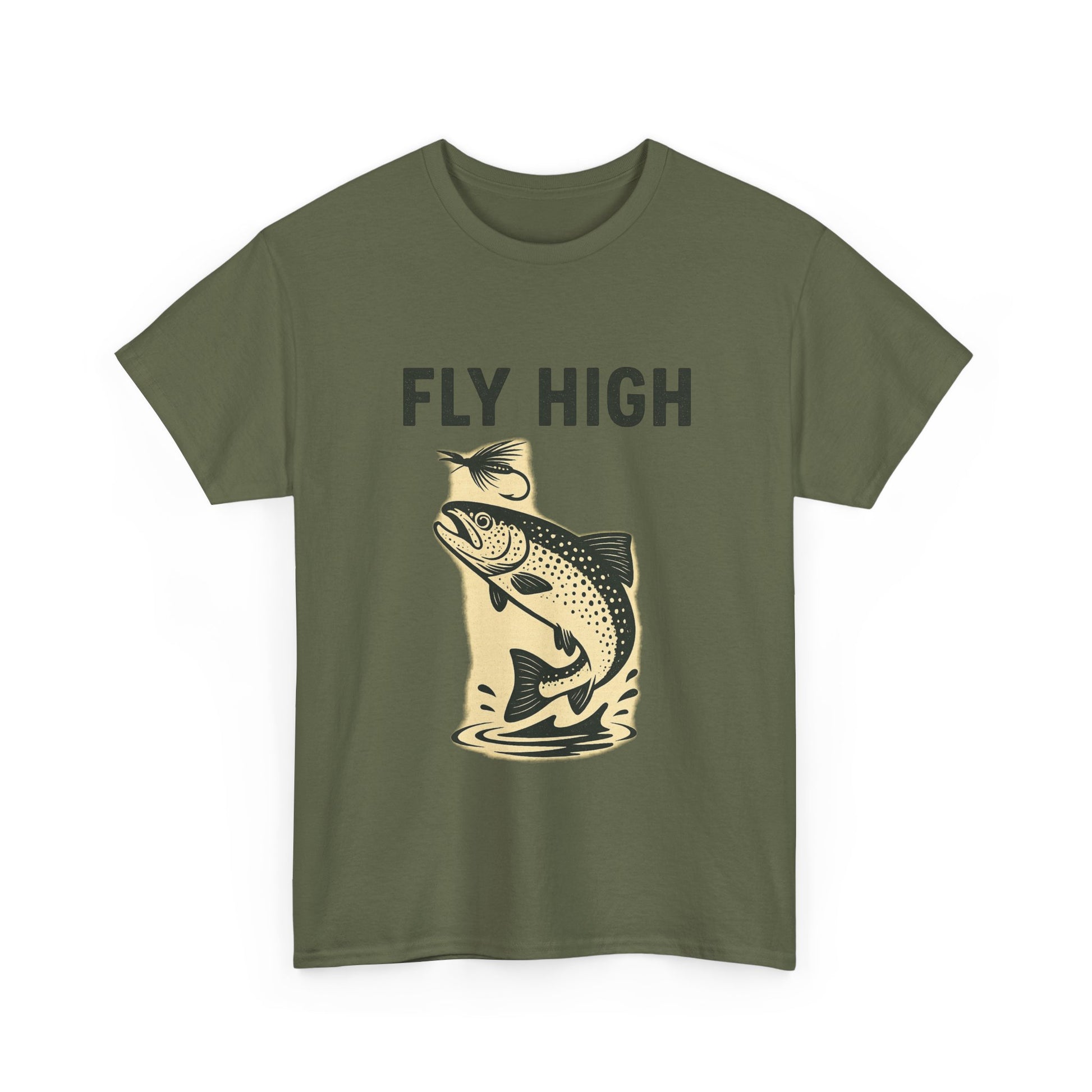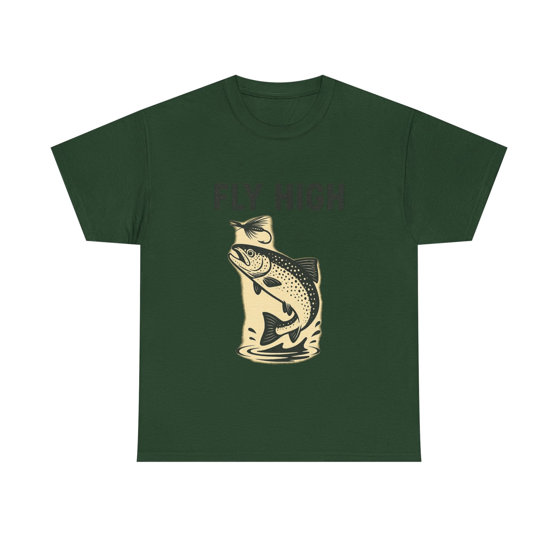 Take your passion for fishing to new heights with our Fly High shirt. Featuring a dynamic design of a trout leaping from the water to strike a fly lure, this shirt celebrates the thrill of the catch and the beauty of the sport.